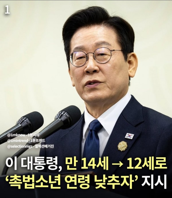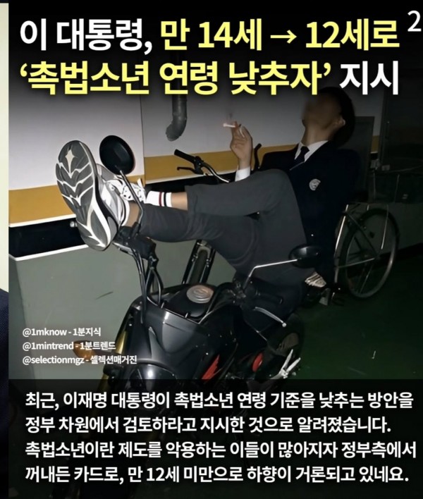 촉법소년 연령 만14세에서 12세로 하향 지시.