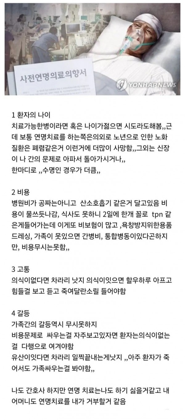 웬만하면 연명치료 받지마라...